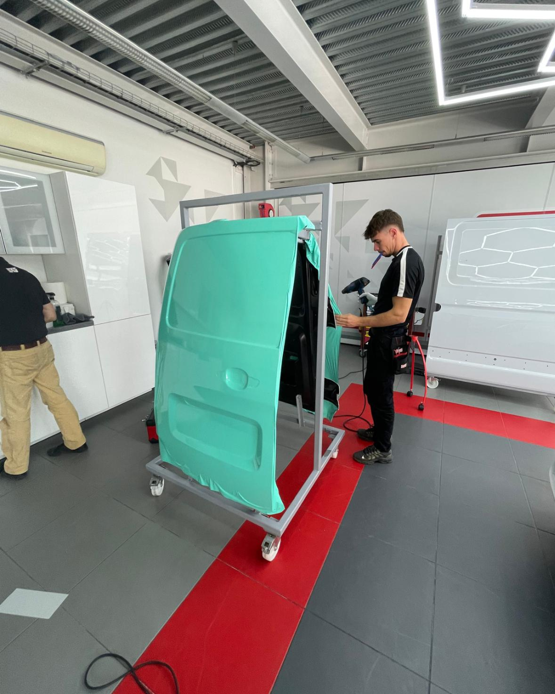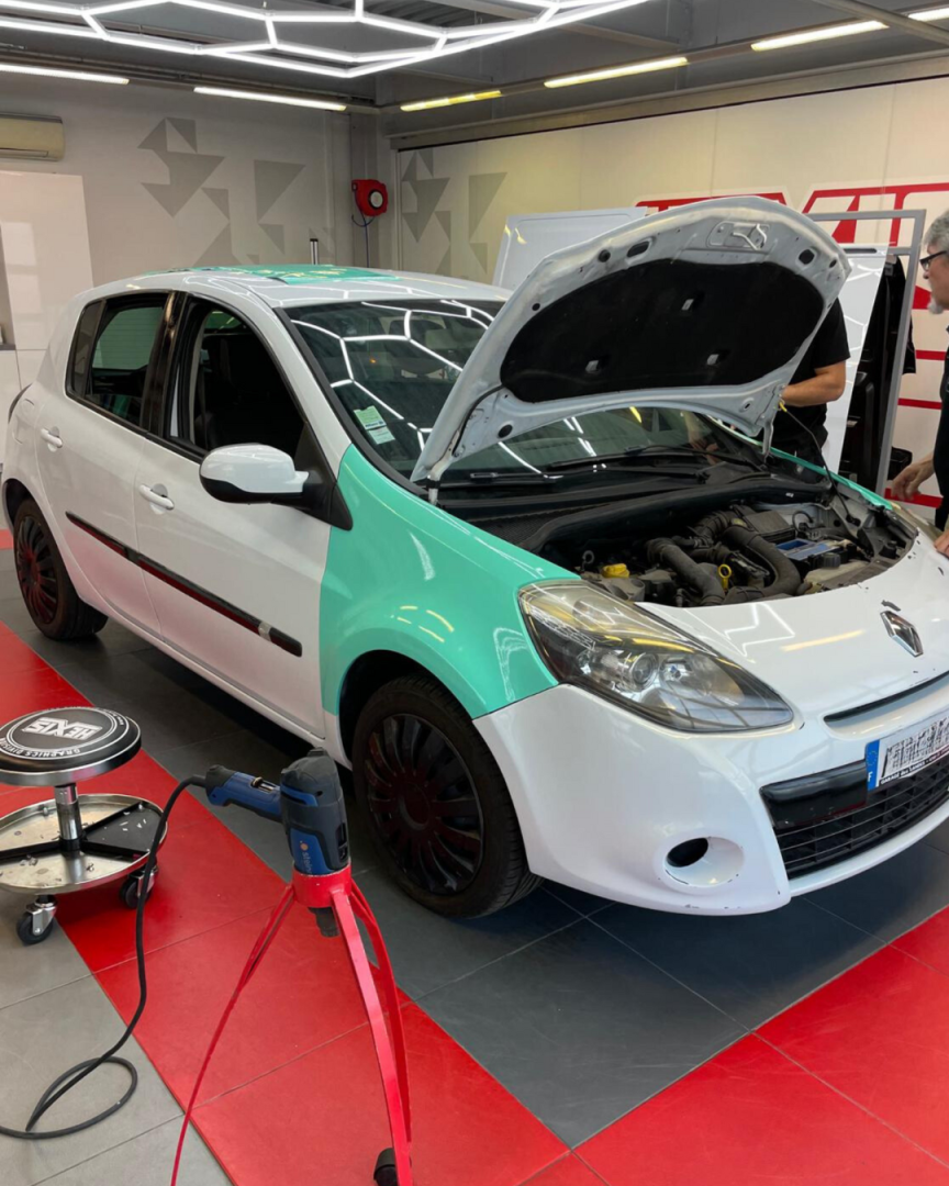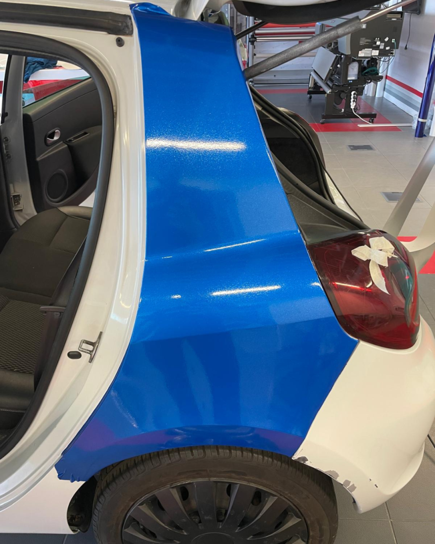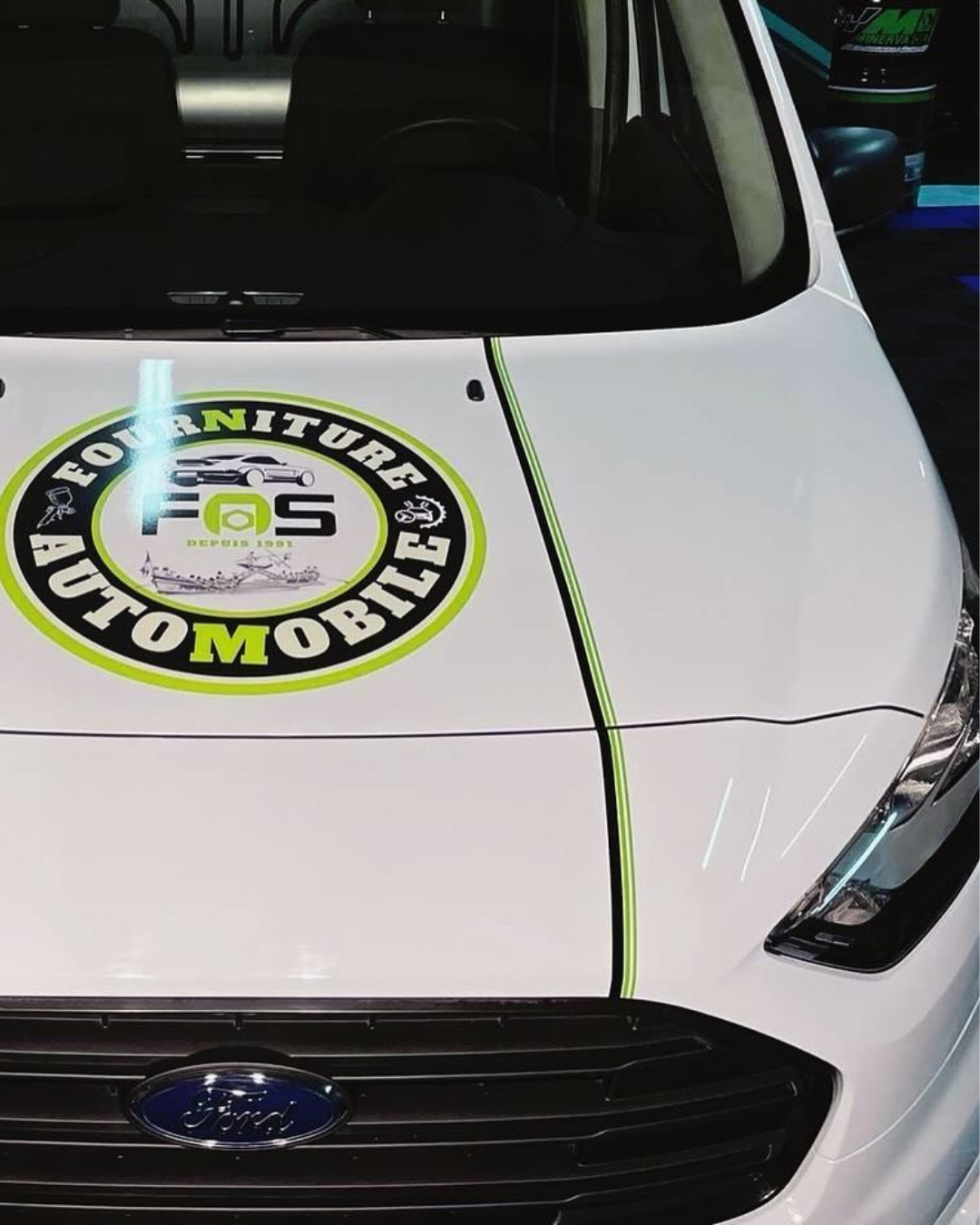 Notre équipe a conçu des illustrations sur-mesure et posé le covering sur l’avant, les côtés et le coffre du véhicule pour renforcer leur visibilité locale grâce à une identité visuelle percutante et professionnelle.